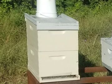 Our fall hive kits will come with two deep 8 frame boxes, bottom board, lid, 16 frames and a feeder bucket for the top. They will be sold in a single box configuration. (Basically a nuc inside of an 8 frame box) The second box will need to be added in the spring to give them room to grow. The box will have 5 drawn frames with bees on them. All additional frames will be foundation. All equipment is used but still in workable shape.